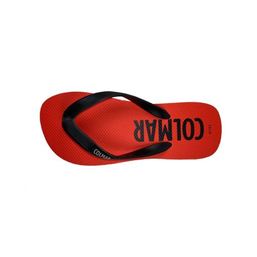 Colmar σαγιονάρες σε κόκκινο χρώμα με μαύρο λουράκι να έχει το λογότυπο της εταιρείας. Ο ανάγλυφος πάτος και η ανθεκτικότητά τους στη ζέστη και στο νερό κάνουν αυτές τις σαγιονάρες μοναδικές, προσφέροντας απόλυτη άνεση χωρίς να γλιστράνε. Ιδανικές για όλες τις ώρες της ημέρας.