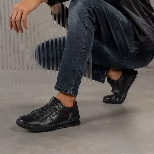 Pegada 110605-04 Ανδρικό Ανατομικό Δερμάτινο Sneaker σε Μαύρο Χρώμα