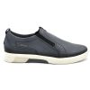 Pegada Ανδρικό δερμάτινο Slip On με μικρά λάστιχα στην εξωτερική και εσωτερική πλευρά σε μπλε χρώμα. Στο σημείο της φτέρνας είναι ενισχυμένο με gel, για να πατάει η φτέρνα μαλακά. Ελαφριά και αντιολισθητική σόλα.