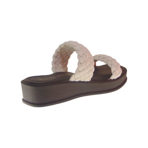 Tsimpolis Shoes γυναικεία παντόφλα σε λευκό χρώμα, με σχέδιo πλεξούδας. Comfort παντόφλα για όλες τις ώρες. Ανατομικών προδιαγραφών. Εξαιρετικά μαλακός πάτος. Ύψος τακουνιού 4 cm, ύψος πέλματος 2cm.