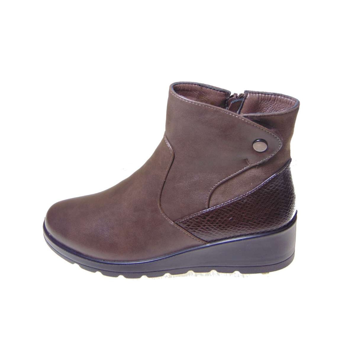 Tsimpolis Shoes μποτάκι σε καφέ χρώμα. Έχει πολύ μαλακό πάτημα και έχει εύκολη χρήση με φερμουάρ. Είναι πολύ ελαφρύ (150 γραμμάρια) και το εσωτερικό του έχει γούνινη επένδυση για να διατηρεί το πόδι ζεστό. Μια καθημερινή casual επιλογή για όλες τις ώρες, προσφέροντας την απόλυτη άνεση. Ύψος τακουνιού 4.5 cm.