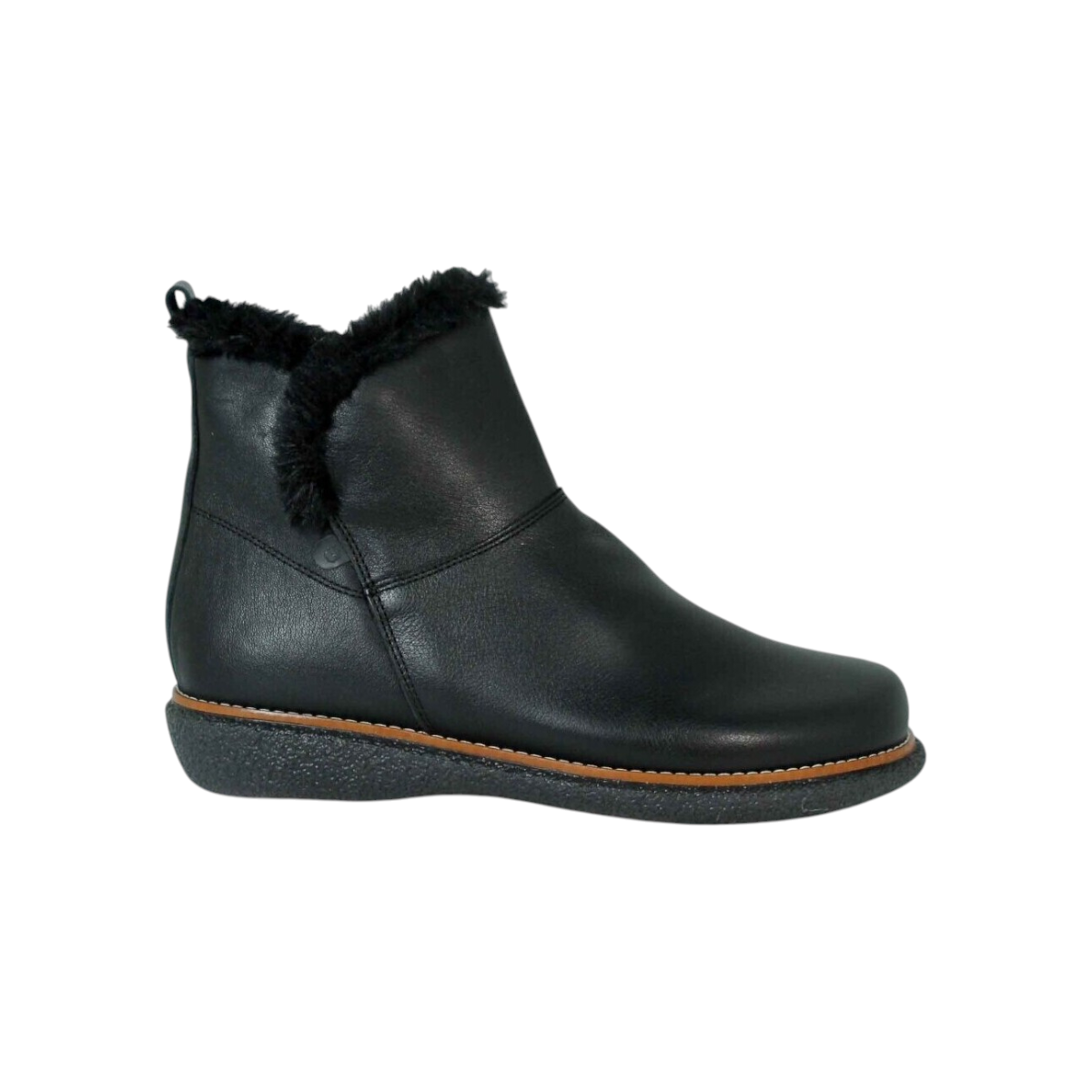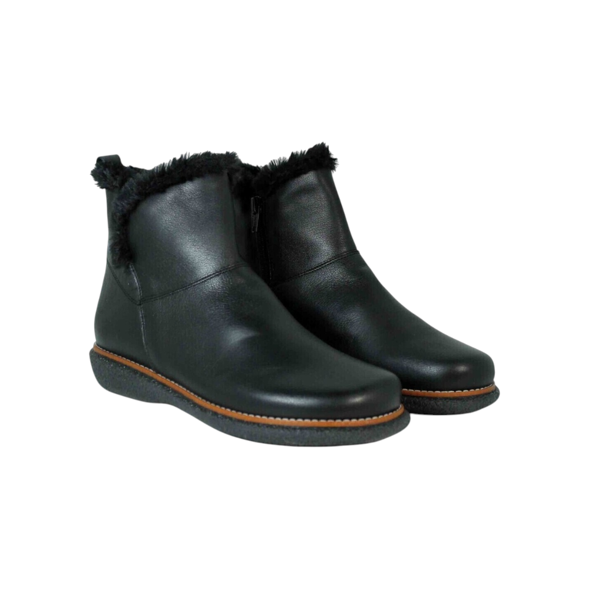 Valeria ‘s 2356-02 Γυναικείο Δερμάτινο Ανατομικό Μποτάκι με Γούνα σε Μαύρο Χρώμα